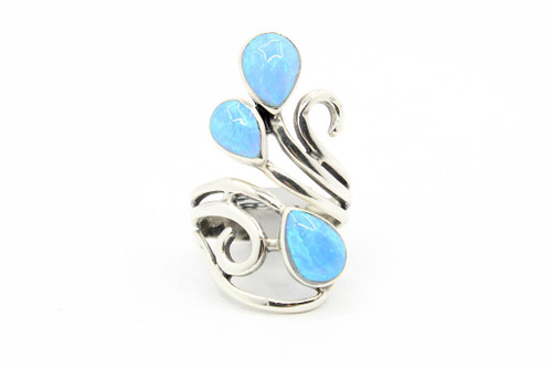 A ring that can be adjusted to any size finger. This ring is all sterling silver and handmade by a Navajo artist. The artist used a stunning blue opal.
