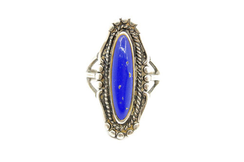 This ring is sterling silver and hand crafted by an Navajo artist. This ring is signed and stamped by the artist for its authenticity. The ring is 1 inch in length and about a .5 inches wide. This ring can be sized to any size needed, just message us the size that's needed.