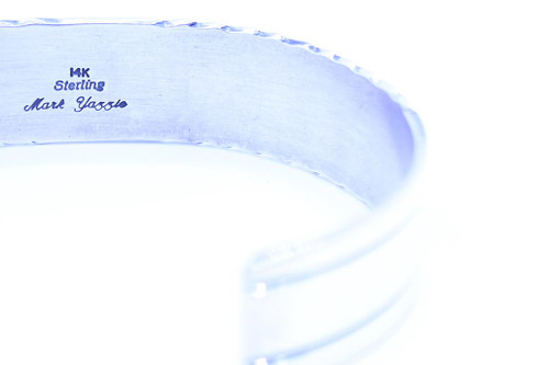 This story teller bracelet is very different. The bracelet is all hand crafted by a Navajo artist named Mark Yazzie. He signed and stamped the bracelet for authenticity. The piece has sterling silver and 14K gold. A great two tone bracelet.