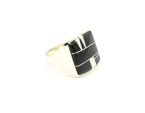 This ring is all sterling silver and hand crafted by one of our featured artist. The stones used are black onyx and white buffalo. The ring is signed and stamped, also comes with certificate of authenticity.