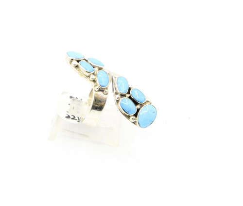 The ring is sterling silver and handcrafted by a Navajo artist who signed and stamped the ring for authenticity. The artist used Kingman, Arizona turquoise. The ring is a piece of artwork.