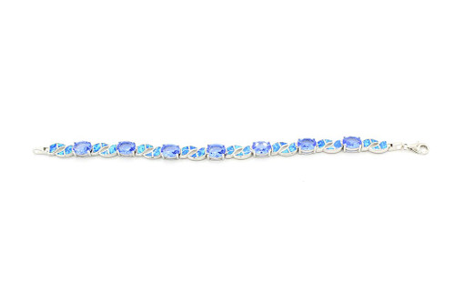 Description The bracelet is sterling silver and has blue opal with CZ tanzanite. The bracelet is 7 inches in length.