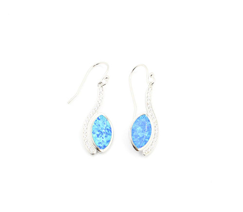 Description The earrings are sterling silver and have blue opal with CZ. The earrings are just over 1 inch in length.