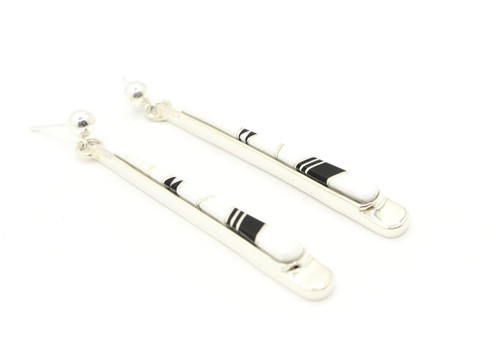The earrings are sterling silver and handcrafted by a Navajo artist. The piece is signed and stamped for its authenticity. The earrings come with a certificate of authenticity, as well. The stones that are featured in the piece are white buffalo and black onyx. The length of the earrings is 2.33 inches. A great piece you can wear every day.
