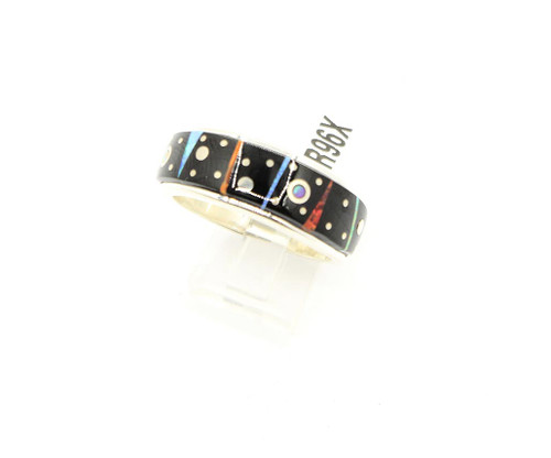 This ring is all sterling silver and handcrafted by one of our featured artisans. The ring is a part of our night sky collection. The stones that the artist inlayed are, black onyx, opal, turquoise and has silver accents. Its signed and stamped, also comes with certificate of authenticity. This is a piece of artwork!