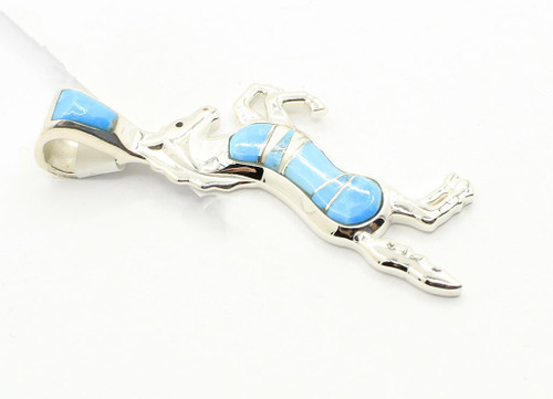 This pendant is handcrafted and signed by our Native-American artist and is made of sterling silver and high-grade natural stones. The stones used in the pendant are sleeping beauty turquoise and sacred white buffalo.