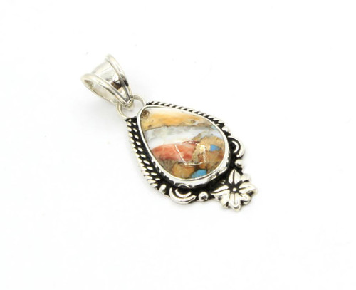 The pendant is sterling silver and handcrafted by a Navajo artist. The stone used in the pendant are called, spiny turquoise. A very unique earring.