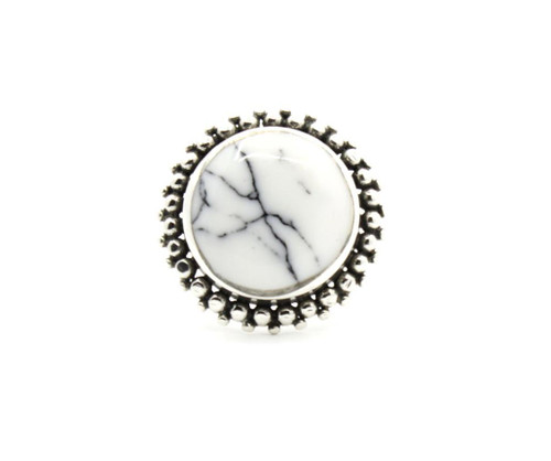 The ring is sterling Silver and handmade by a local Navajo artist who signed and stamped the piece for authenticity. The artist used a white buffalo.