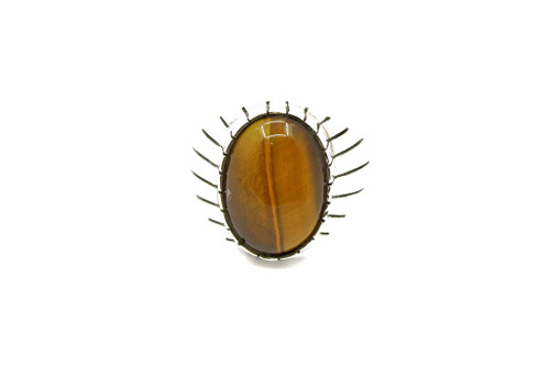 If you don't own a piece of jewelry that has Tiger's eye in it then you need to. This ring is all sterling and hand made by a Navajo artist who stamped the ring for its authenticity.