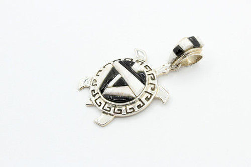This pendant is all sterling silver and handcrafted by one of our featured artist. The artist used black onyx and white buffalo. The pendant will also come with a certificate of authenticity.