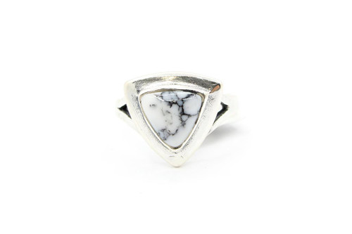 This ring is sterling silver and handcrafted by a Navajo native of American artist. The stone that is used is called, White buffalo. A great everyday ring.
