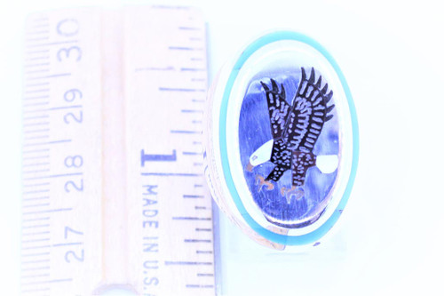 The eagle ring is all handmade out of sterling silver by a Zuni artist who signed and stamped the ring for authenticity. The ring has turquoise, onyx and mother of pearl.